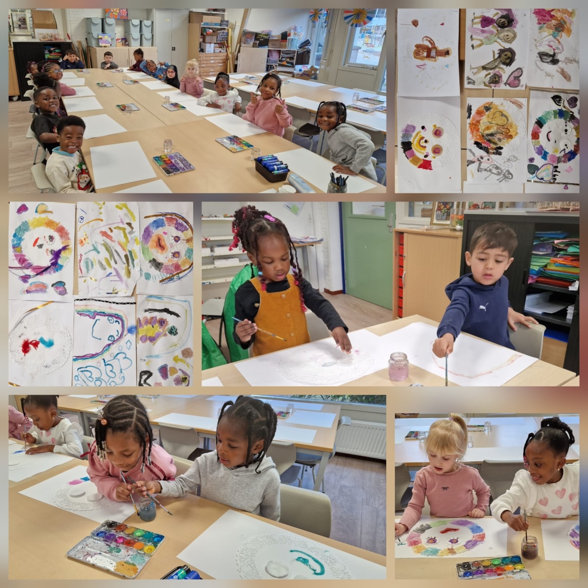 Deze week hebben de kleuters hun kunstwerken bij de Bevo afgemaakt.
