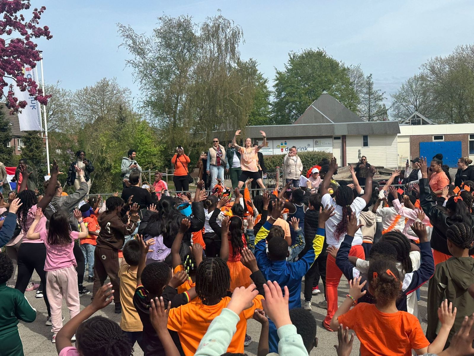 *De midden- en onderbouw waren in de middag op het schoolplein te vinden. Het was een gezellige boel.